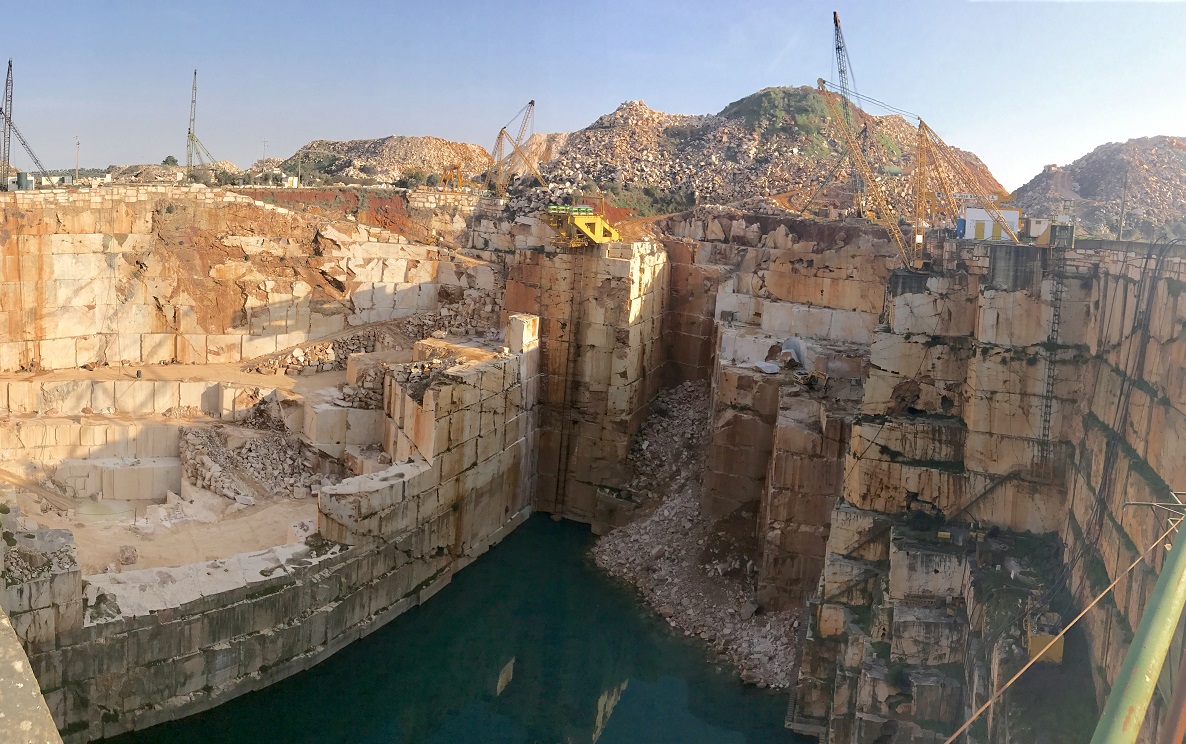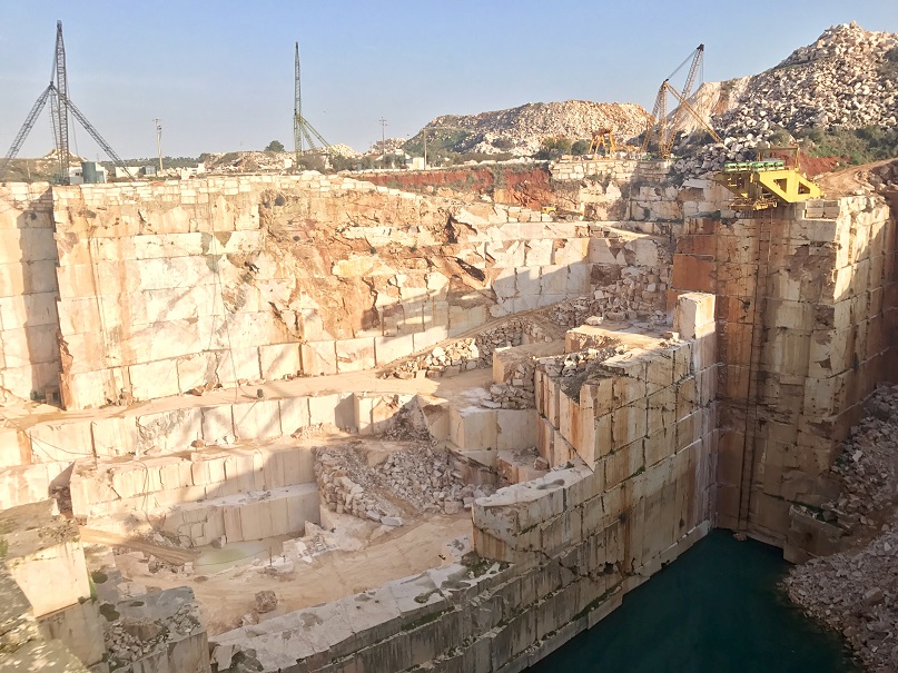 Kolejnym celem naszych tegorocznych wypraw stał się kamieniołom Rosa Portogallo w miejscowości Borba we wschodniej części Portugalii. To miejsce słynące z przepięknych marmurów o zróżnicowanej kolorystyce i rysunku, które dodatkowo cechują się ponadprzeciętną twardością. Bardzo ciekawa jest metoda wydobycia kamienia, który wycinany jest w formie bloków przy użyciu linek diamentowych. W kamieniołomie Rosa Portogallo znajduje się ponad dwadzieścia pokładów kamienia, a większość z nich zalana jest wodą. Najniżej znajdują się pokłady marmuru o ciemnoróżowym odcieniu. To czarujący Roso Portogallo, który swoją nazwę zawdzięcza miejscu wydobycia. Poza Rosa Portogallo udało nam się zakupić wyjątkowo piękne slaby białego marmuru Alpine White, czarnego Spider Black oraz szarego Grigio Piemonte. Kamieniołom Rosa Portgallo odwiedzamy regularnie od wielu lat. Efekty tegorocznej wizyty były wyjątkowo udane ze względu na niesamowitą czystość kamienia, który udało się pozyskać do oferty Interstone.