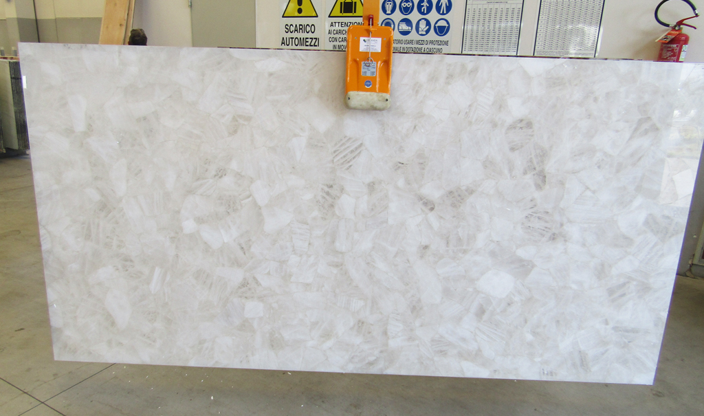 Swoją nazwę zawdzięcza greckiemu słowu „krystallos” oznaczającemu lód. Nieskazitelna czystość i silny połysk sprawiają, że niegdyś kamień ten często mylony był z diamentem (stąd takie jego nazwy jak diament alaskański, bohemiński czy islandzki). Kryształ górski jest powszechnie stosowany do wyrobu biżuterii. Pokazuje to jak ekskluzywnym, a zarazem szlachetnym rozwiązaniem jest stosowanie płyt Mountain Crystal do dekoracji wnętrz, w tym wykonania blatu kuchennego, obudowy kominka czy blatu stołu. Należy podkreślić, że poza niezwykłymi walorami dekoracyjnymi Mountain Crystal jest nadzwyczaj odporny na działanie kwasów i zasad oraz zarysowania (twardość - 7 w skali Mohsa).