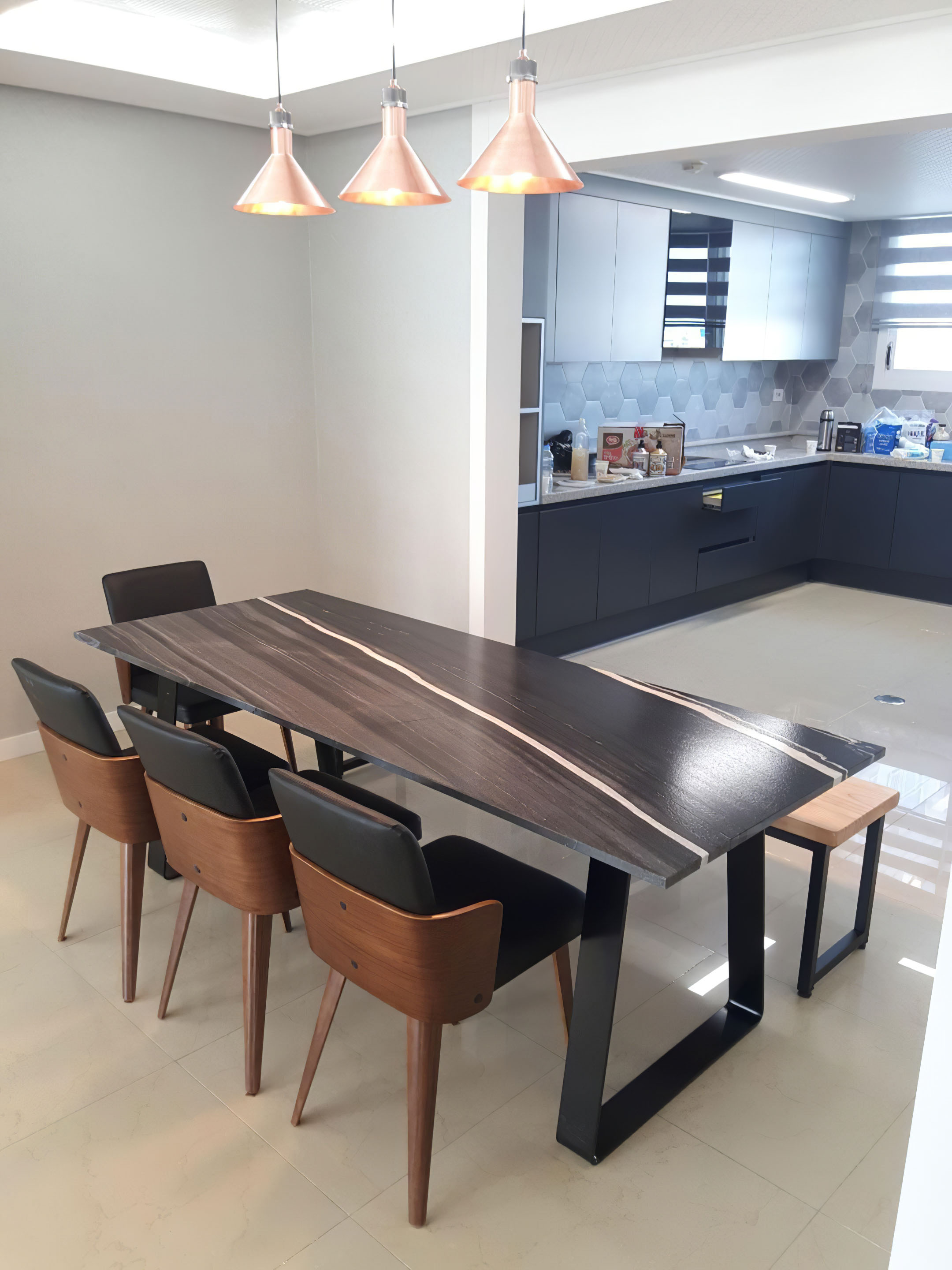 Nasycona czerń poprzecinana jasnymi wstęgami użyleń jest dowodem fenomenu Matki Natury. Nieoczywiste piękno naturalnego kamienia znów zachwyca. Projektanci łączą elegancką czerń nie tylko z ponadczasową bielą, ale ciemne tony granitu zestawiają ze złotem, miedzią, grynszpanem czy granatem.