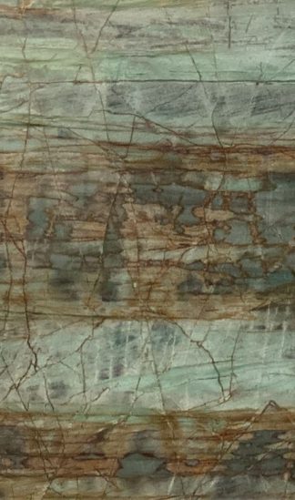 Zielony, polerowany kwarcyt Amazonia z Brazylii łączy malarskie użylenie z efektem przenikania światła i wyjątkową trwałością. / Ten szlachetny kamień, wydobywany w Brazylii, charakteryzuje się głęboką zielenią oraz użylonym, niemal malarskim rysunkiem, który podkreśla polerowane wykończenie. Amazonia osiąga twardość ok. 7 w skali Mohsa i jest wyraźnie twardsza od granitu, przez co jest trudniejsza do zarysowania nawet stalą. Zwarta struktura zapewnia niską nasiąkliwość, odporność na plamy, wysoką odporność na ścieranie, temperaturę i promieniowanie UV. Dostępna w grubościach 2 i 3 cm, sprawdza się na blatach kuchennych, posadzkach, schodach, obudowach kominków, elewacjach i innych elementach wewnętrznych oraz zewnętrznych, gdzie wymagana jest estetyka i trwałość. Ze względu na malarski rysunek Amazonia często pojawia się w reprezentacyjnych realizacjach, nadając wnętrzom i fasadom prestiżowy, ponadczasowy charakter.