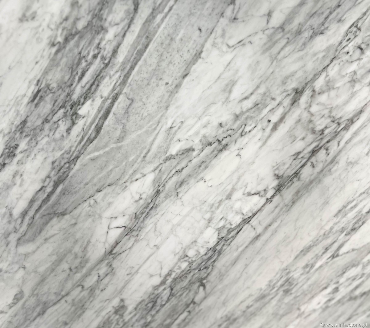 Włoski marmur o ponadczasowej elegancji i naturalnej fakturze. Bianco Carrara to polerowany kamień w odcieniach bieli i szarości, o umiarkowanym wzorze, który wprowadza klasyczną atmosferę do wnętrz. / Ten szlachetny marmur wydobywany we Włoszech, w okolicach Carrary charakteryzuje się średnią twardością 3 w skali Mohsa i gęstością około 2,7 g/cm3, przez co jest klasyfikowany jako miękki kamień podatny na zarysowania, kwasy i plamy. Polerowane wykończenie podkreśla kontrast żył i barw. Dostępny w grubościach 2 i 3 cm, nadaje się do blatów łazienkowych, kominków, parapetów, podłóg, schodów i ścian. Marmur ten był chętnie używany przez Michała Anioła i do budowy bazyliki św. Piotra, co potwierdza jego historyczną rangę. Zaleca się impregnację co 6–12 miesięcy, aby chronić powierzchnię przed przebarwieniami i działaniem kwasów profilaktycznie.