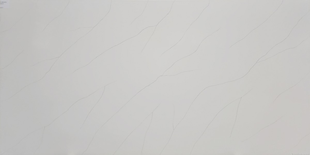 Konglomerat o eleganckim, kremowym wybarwieniu z subtelnymi żyłkowaniami. Carrara Grigio to trwały, polerowany materiał idealny do eleganckich wnętrz. / Ten szlachetny konglomerat, inspirowany marmurem z Carrara, łączy naturalne kruszywa i żywicę, co zapewnia wysoką trwałość oraz odporność na zarysowania. Materiał jest dostępny w grubości 2 cm. Polerowane wykończenie podkreśla subtelne żyłkowanie i kremowy kolor, nadając wnętrzom luksusowy charakter. Konglomerat osiąga twardość 6-7 w skali Mohsa, przewyższając marmur, i wykazuje wysoką wytrzymałość na ściskanie oraz zginanie, dlatego świetnie sprawdza się na blaty, parapety i schody. Inspiracja marmurem Carrara łączy klasyczny wygląd z praktycznymi zaletami nowoczesnego materiału.