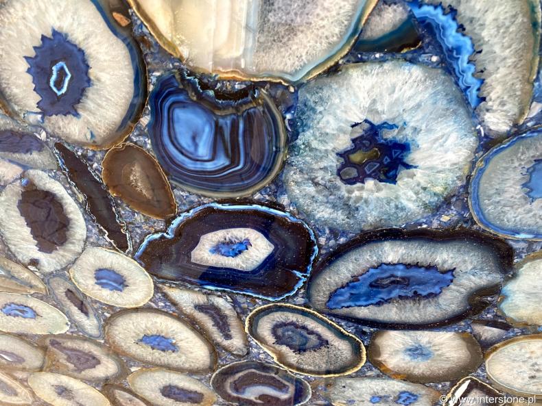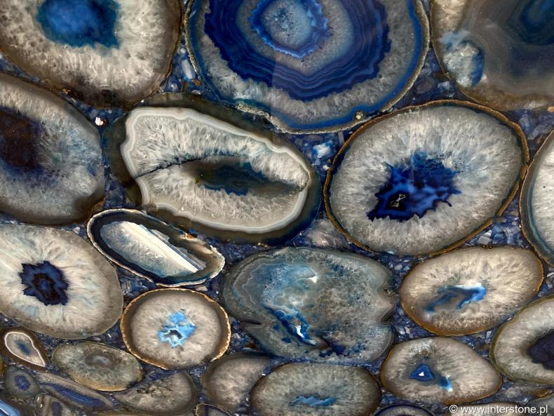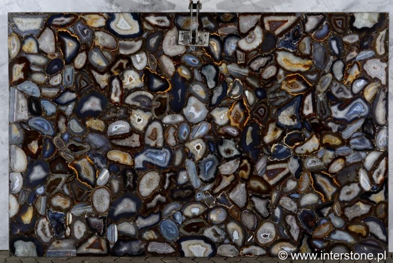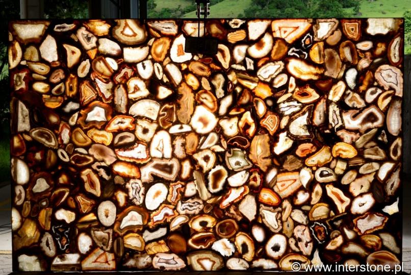 • Патагония - кварцит, происходящий из центрально-восточной части Бразилии в штате Минас-Жерайс. Нежная сливочно-бежевая основа сочетается с серебряными и черными минералами, создавая уникальные рисунки использования. Все, что обогащено большими фрагментами горного хрусталя, расположено в уникальной композиции, которая после подсветки приобретает впечатляющий, эксклюзивный вид.