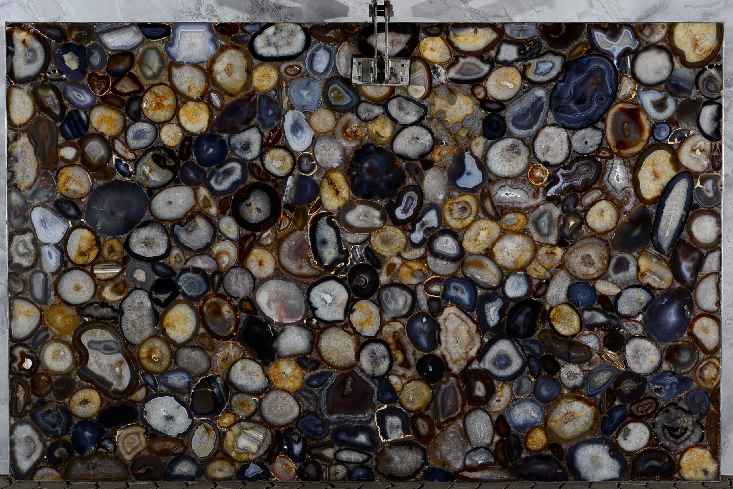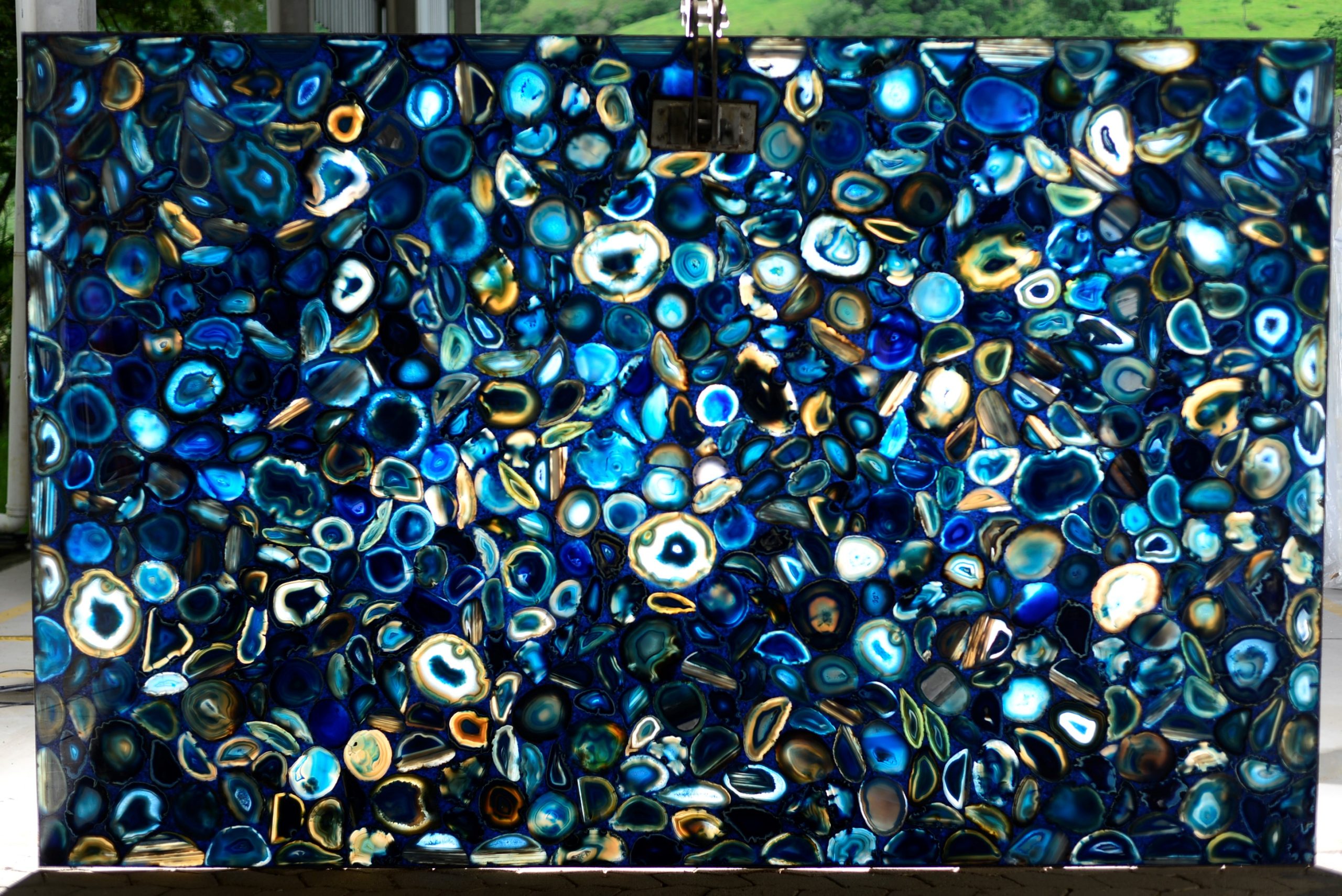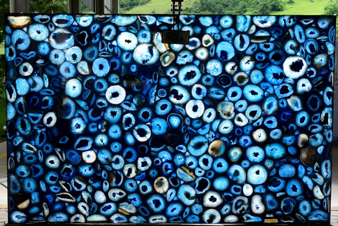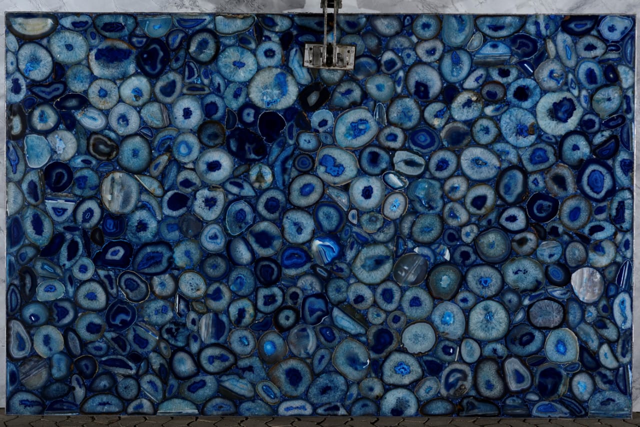 W ofercie Interstone nie mogło zabraknąć agatów w kolorze niebieskim, który według instytutu Pantone jest barwą roku. Agata Blue z oferty Interstone wprowadzi do wnętrz zjawiskowy klimat:  wyraźne przeświecalności na tle intensywnych tonów niebieskiego tworzą prawdziwy spektakl – starannie oświetlone wzory kamienia Agata Blue nie pozwalają ani na moment oderwać od niego wzroku. Agat w tym kolorze może być idealnym dopełnieniem komercyjnych przestrzeni, jak strefy spa, baseny hotelowe czy saunaria. W domowych aranżacjach piękno niebieskiego agatu świetnie sprawdzi się w sypialniach, pokojach kąpielowych, łazienkach, ale także w strefie wypoczynkowej salonu.