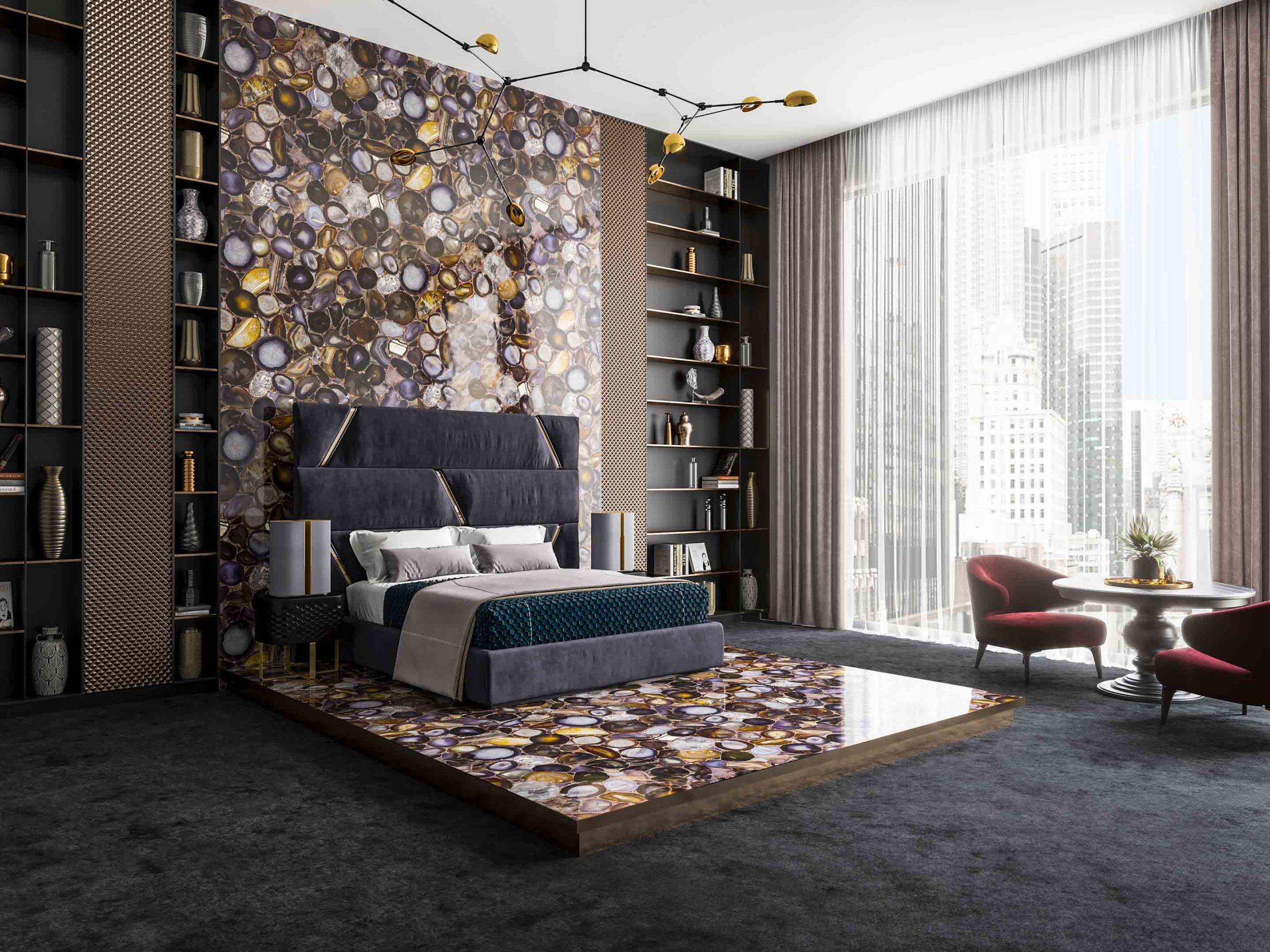 Wychodząc naprzeciw miłośnikom ciemnych barw i mocnych akcentów, Interstone wprowadziło do swojej oferty agat w ponadczasowej, intensywnej czerni. Agata Black to idealna propozycja do aranżacji inspirowanych stylami glamour czy art deco. Nie od dziś wiadomo, że złoto i czerń tworzą razem wyjątkowo zgrany duet. Niepowtarzalny charakter czarnego agatu warto także wykorzystać w hotelowych strefach spa i welness. Bezpretensjonalna czerń będzie perfekcyjnym tłem dla barwnych dodatków. Wydobywane w dalekiej Brazylii agaty słyną ze swej unikatowości i niezwykłej palety barw. Feeria kolorów oraz perfekcyjna funkcjonalność sprawiają, że agaty z oferty Interstone szturmem podbijają wnętrzarski świat.