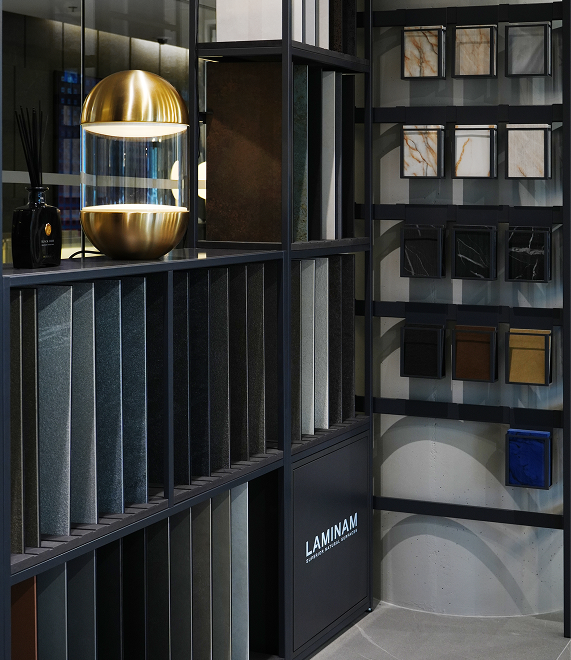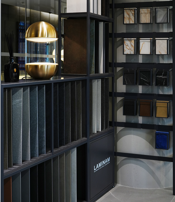 - Dedykowana przestrzeń dla profesjonalistów – strefa Laminam służąca bieżącej pracy oraz przestrzeń Interstone dostosowana do organizacji szkoleń i spotkań branżowych, wyposażona w rzutnik i system zaciemniający. Na miejscu czeka wykwalifikowana obsługa, która pomoże wybrać optymalne rozwiązania, dokona wyceny i zamówi odpowiednie materiały.