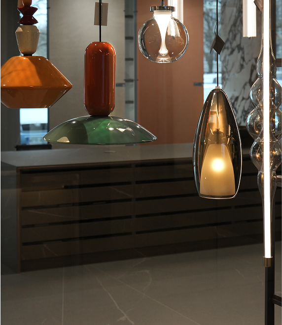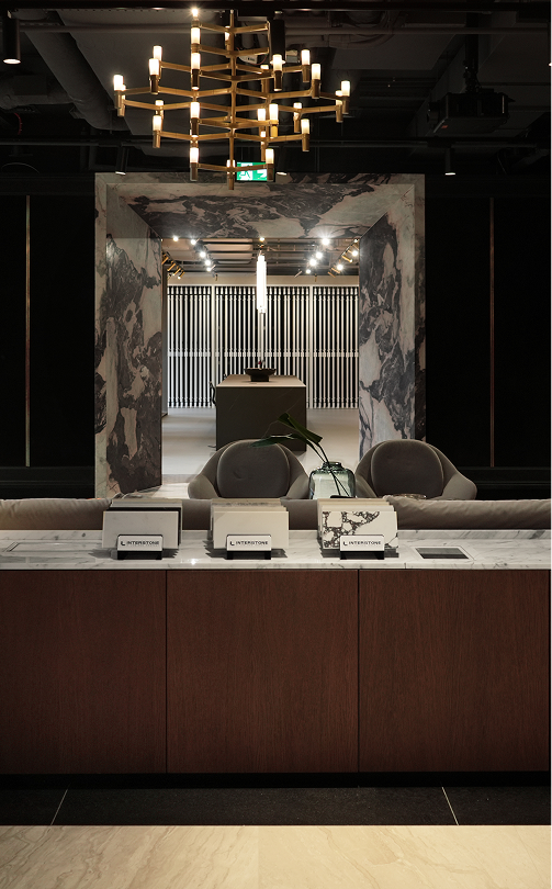 - Integracja sztuki z designem – obecność w przestrzeni dzieł sztuki, w tym rzeźb Wojtka Pustoły, tworzy inspirujące środowisko, zachęcające do łączenia materiałów z oferty Interstone ze sztuką współczesną. Dodatkowo ekspozycja lamp wiszących i stołowych firmy Elit Design (firmy dystrybuującej włoskie marki oświetleniowe) jest cyklicznie zmieniana.