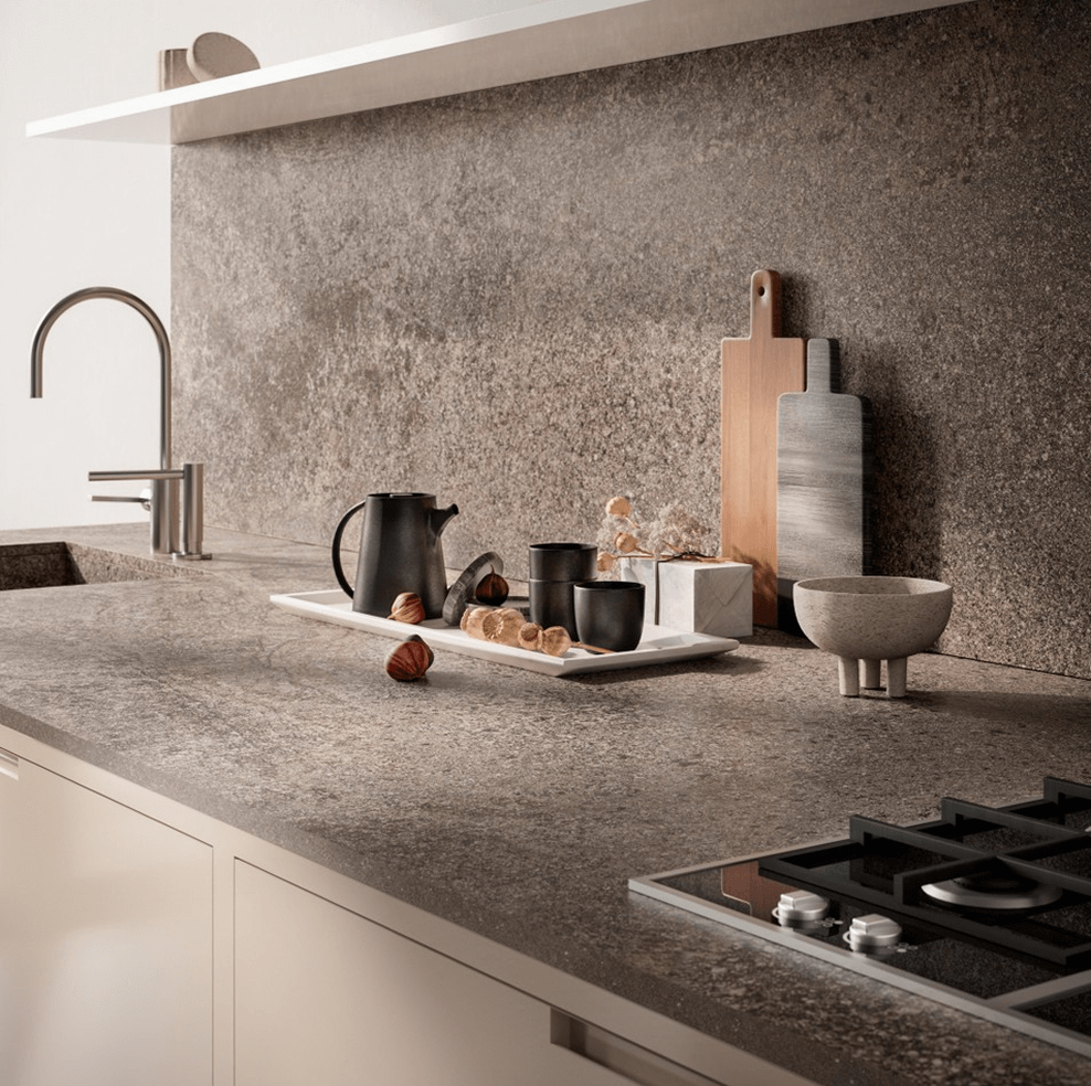 3. Wyjątkowa łatwość utrzymania higieny dzięki nieporowatej strukturze większości materiałów z oferty Interstone. Powierzchnia spieków Laminam nie wchłania płynów, zapachów ani barwników z przygotowywanych potraw, co zapobiega rozwojowi bakterii i powstawaniu trwałych plam. Konglomeraty InterQ i spieki kwarcowe nie wymagają impregnacji, a kamienie naturalne zachowują swoje właściwości przez lata przy minimalnej konserwacji. Spieki kwarcowe Laminam posiadają atest NSF, co potwierdza zasadność ich wyboru do kuchni. Bardzo istotne jest również to, że spieki i konglomeraty, poza kilkoma wyjątkami, można czyścić dowolną chemią gospodarstwa domowego. Chętnie doradzimy w temacie okresu, w jakim należy ponownie impregnować swój kamień naturalny. Nie każdy granit, kwarcyt czy marmur posiada te same właściwości – zdarzają się granity bardziej chłonne, ale też bardzo zbite i praktycznie nieporowate kwarcyty.