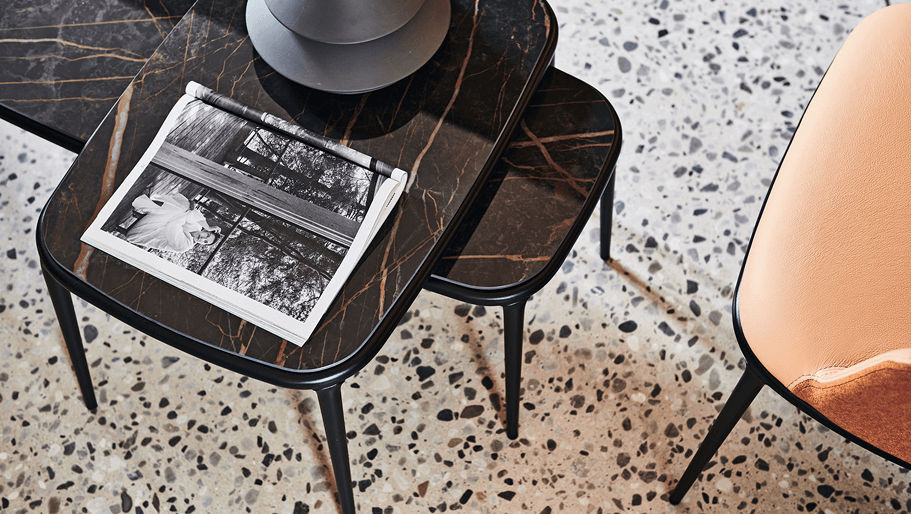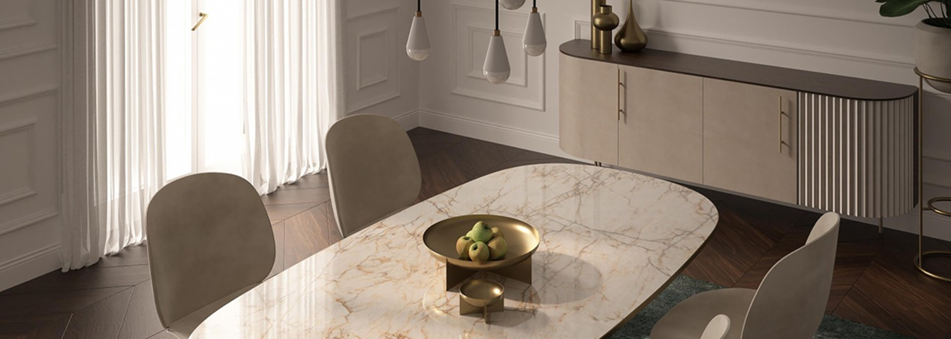6. Zdumiewająca funkcjonalność w codziennym użytkowaniu – blaty stołów z granitu czy spieku kwarcowego Laminam są odporne na zarysowania, wysokie temperatury i plamy, co czyni je idealnymi do jadalni czy kuchni. Marmurowe powierzchnie komód nie odkształcają się pod wpływem wilgoci czy ciężaru, a granitowe elementy regałów wytrzymują obciążenie nawet bardzo ciężkimi przedmiotami bez uginania się. Konglomeraty InterQ, dzięki swojej jednolitej strukturze, są idealne do blatów i frontów meblowych wymagających precyzyjnego wykończenia. Ta praktyczność idzie w parze z estetyką, tworząc meble równie funkcjonalne, co piękne.