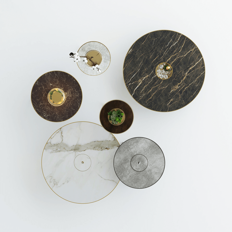4. Zaskakująca lekkość nowoczesnych rozwiązań – współczesne technologie pozwalają na tworzenie ultracienkich płyt, które mogą być aplikowane na lekkie konstrukcje. Spieki kwarcowe Laminam o grubości 3+ mm (3,5 mm) naklejane na aluminiowe ramy czy kompozyty z warstwą naturalnego kamienia na lekkim rdzeniu pozwalają cieszyć się pięknem materiałów z oferty Interstone bez nadmiernego obciążania konstrukcji mebla. Konglomeraty InterQ mogą być szlifowane do grubości znacznie mniejszych niż standardowe, co umożliwia ich zastosowanie nawet w lekkich meblach. W przypadku mebli z drzwiami, ze względu na ograniczenia wagowe, można stosować specjalnie „pocienione” w zakładzie kamieniarskim kamienie naturalne, spieki kwarcowe czy konglomeraty.