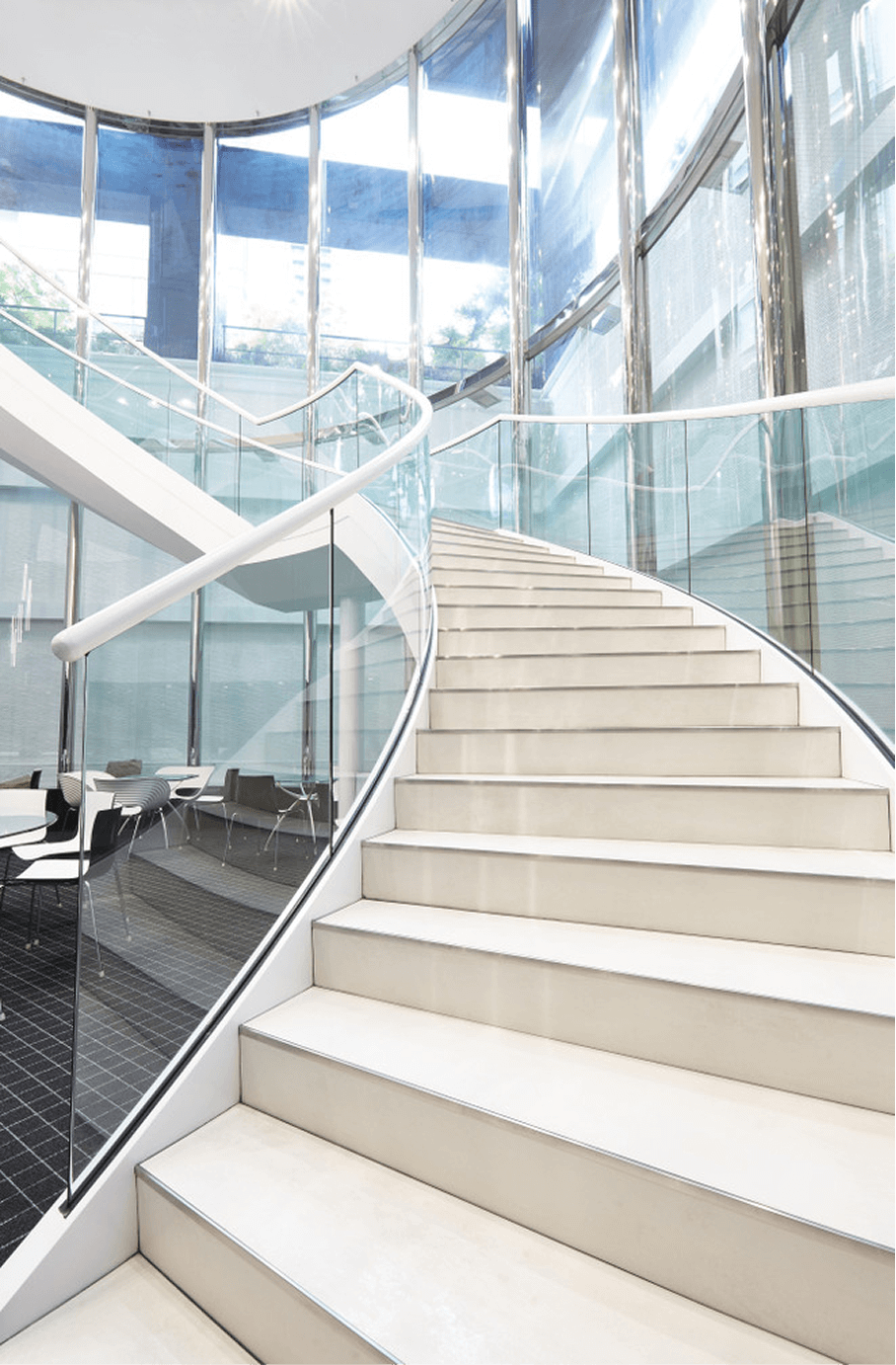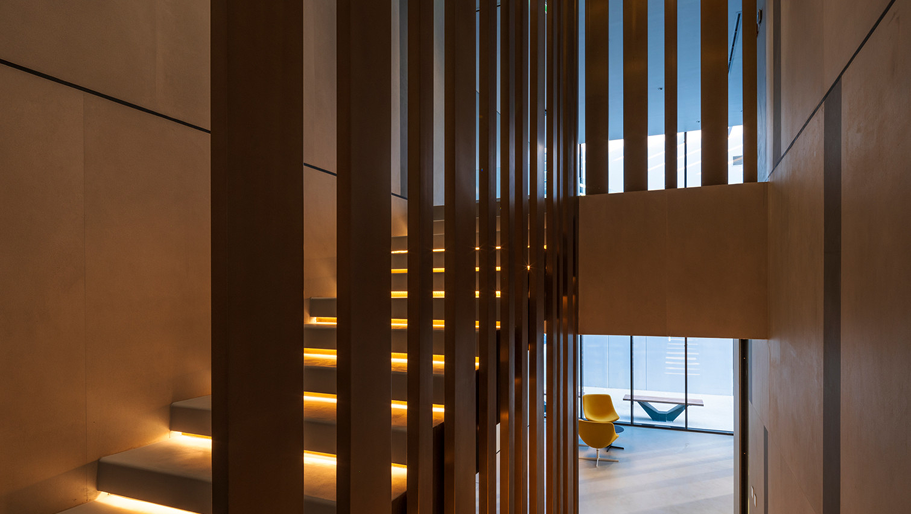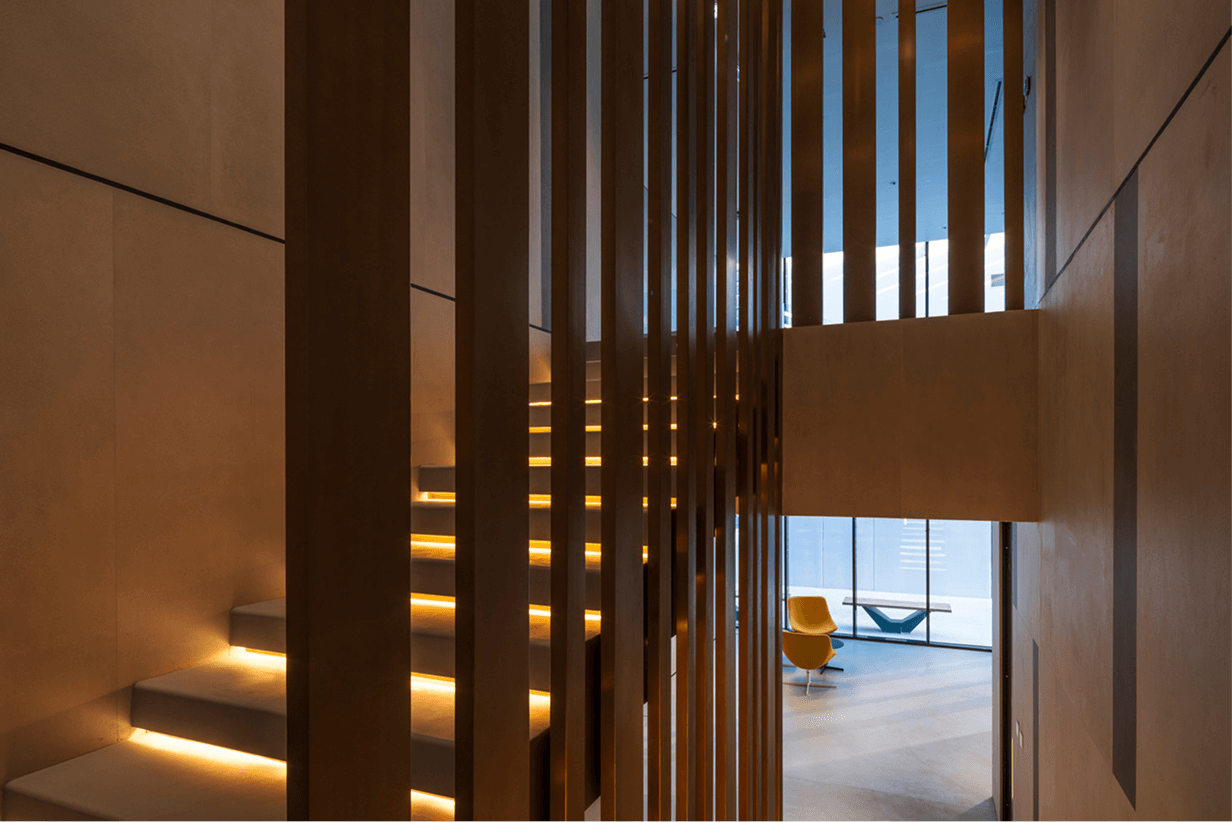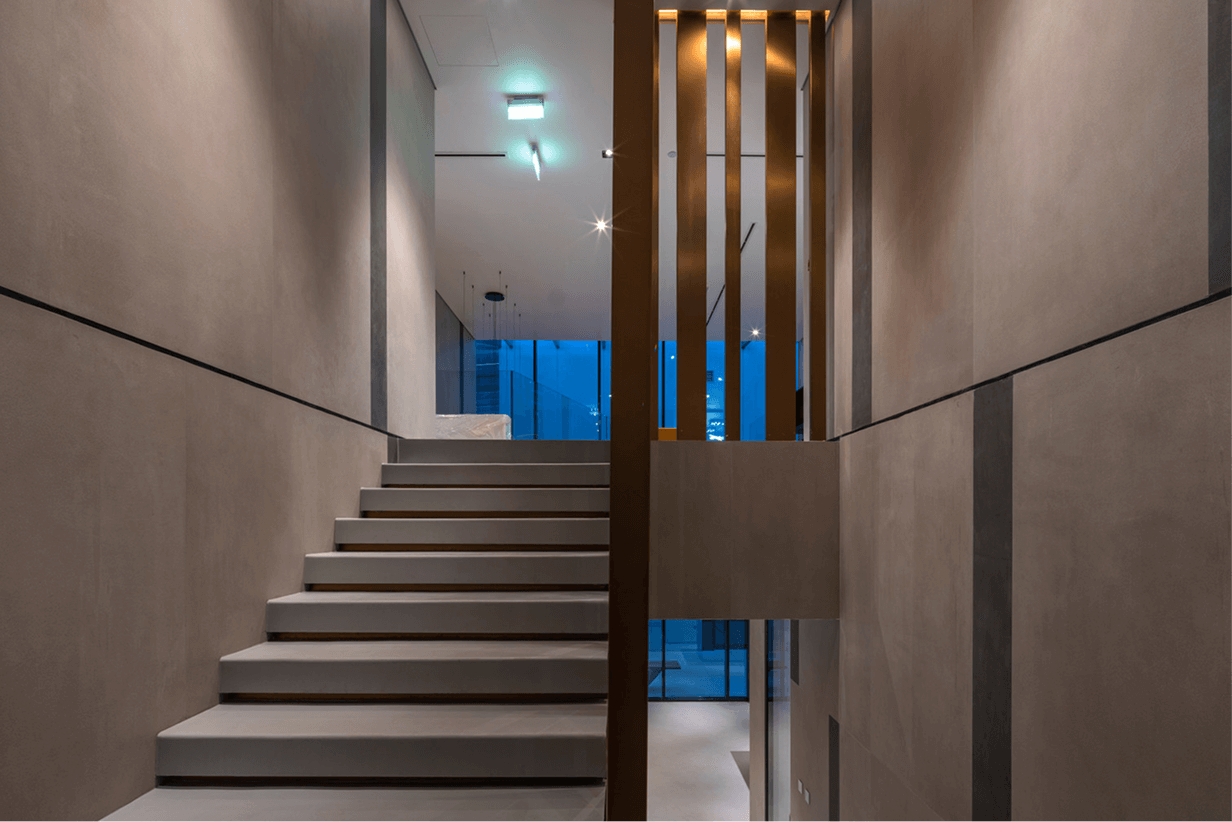 - Doskonała integracja z architekturą budynku – kamień można formować i obrabiać w sposób pozwalający na realizację niemal każdej wizji architektonicznej. Od klasycznych, profilowanych parapetów po minimalistyczne, monolityczne stopnie – możliwości są praktycznie nieograniczone. Ten sam materiał można zastosować na elewacji, tarasie i schodach, tworząc spójną wizualnie kompozycję. Spieki z kolekcji tWo by Laminam są natomiast podatne na wyginanie w obu kierunkach – zarówno do środka jak i na zewnątrz. Minimalny promień, jaki możemy uzyskać przy wygięciu płyty 1000x3000x2+, to 3m. Zaokrąglone narożniki elewacji czy wygięte podstopnice – czemu nie? Kolekcje Laminam takie jak Fokos, Calce czy Ossido doskonale komponują się z nowoczesną architekturą, a kolekcja I Naturali harmonijnie uzupełnia bardziej klasyczne budynki.