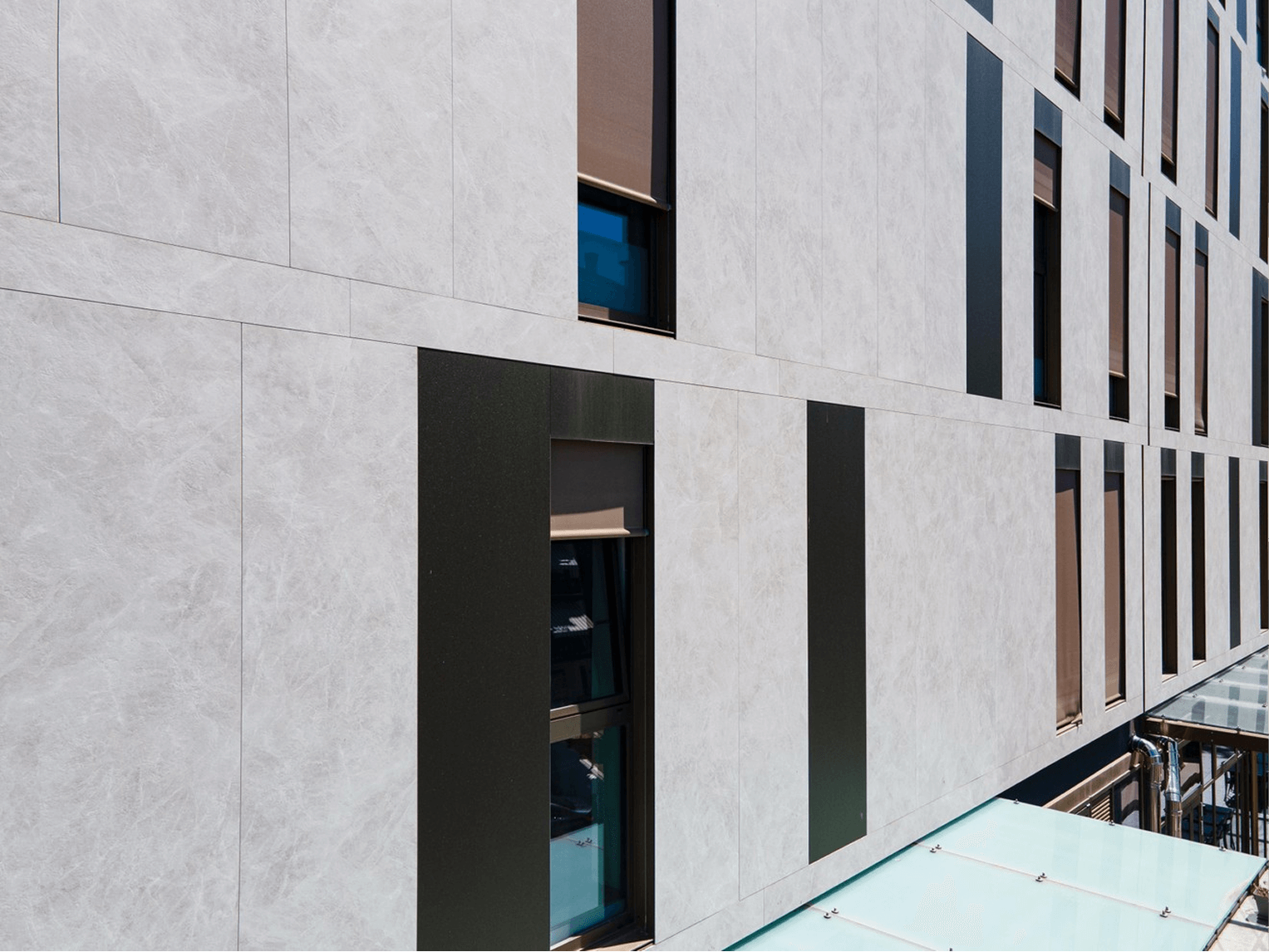 - Efektywna ochrona przed zanieczyszczeniami miejskimi – odpowiednio zaimpregnowane kamienie naturalne nie wchłaniają pyłów, sadzy czy innych zanieczyszczeń powszechnych w środowisku miejskim. Deszcz naturalnie zmywa powierzchnię, która nie ulega trwałemu zabrudzeniu. Spieki kwarcowe Laminam z zastosowaną powłoką Ambience są niezwykle łatwe w czyszczeniu, co dodatkowo podnosi ich walory użytkowe w zanieczyszczonym środowisku miejskim. Ta właściwość jest szczególnie cenna w centrach miast, gdzie inne materiały elewacyjne szybko tracą swój pierwotny wygląd.