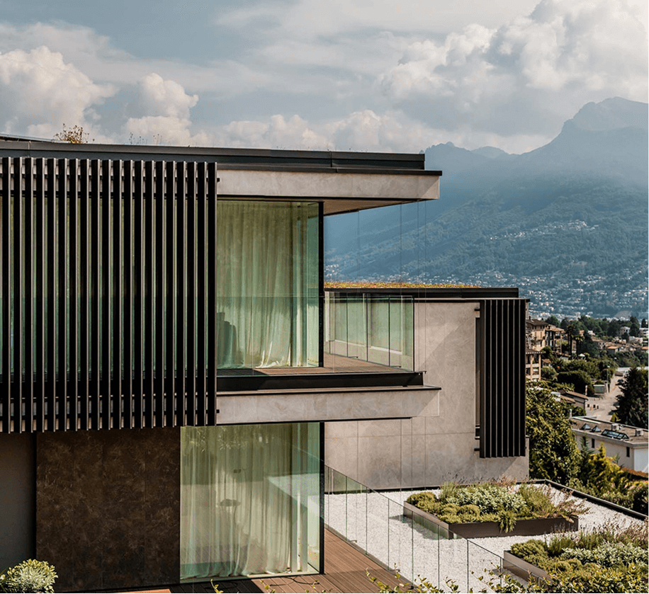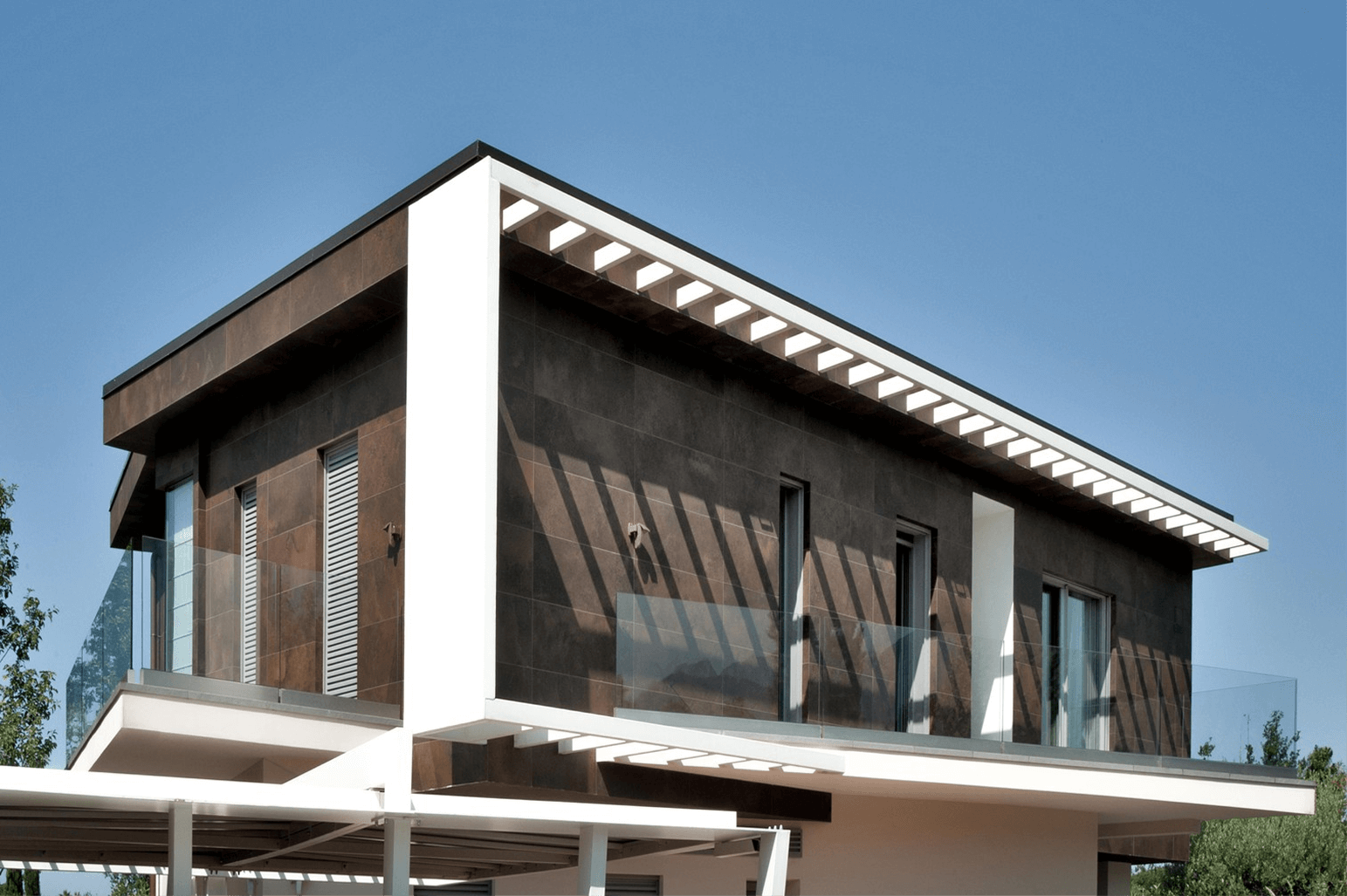 - Doskonała izolacja termiczna w systemach elewacji wentylowanych – kamień naturalny i spieki kwarcowe Laminam montowane na podkonstrukcji z pustką powietrzną tworzą efektywną barierę termiczną. Latem odbijają promienie słoneczne, zapobiegając przegrzewaniu się budynku, a zimą współpracują z warstwą izolacji, ograniczając straty ciepła. Spieki kwarcowe Laminam, dostępne w różnych grubościach (od 3+ mm do 5+ mm), są idealnym materiałem do elewacji wentylowanych – ich niewielka waga nie obciąża konstrukcji budynku, a doskonałe parametry techniczne zapewniają trwałość i estetykę. To przekłada się na wymierne oszczędności energii i zwiększenie komfortu użytkowania obiektu.