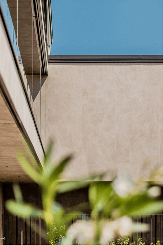 - Zwiększone bezpieczeństwo pożarowe – materiały z oferty Interstone przeznaczone na elewacje są całkowicie niepalne i nie wydzielają toksycznych substancji pod wpływem wysokiej temperatury. Spieki kwarcowe Laminam mają certyfikowaną niepalność, co dodatkowo zwiększa bezpieczeństwo ich stosowania na elewacjach. W przypadku pożaru stanowią barierę ogniową, dając więcej czasu na ewakuację i działania służb ratunkowych. Ta właściwość jest szczególnie istotna w budynkach wysokościowych i obiektach użyteczności publicznej.